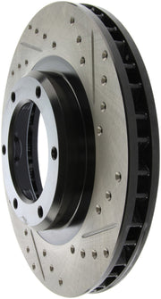 Les disques de frein sport percés et rainurés StopTech sont des disques de frein monobloc de remplacement direct pour les systèmes de freinage d'usine et les étriers de série qui ont fière allure derrière vos roues et offrent des performances de freinage considérablement améliorées. Le perçage transversal et le rainurage uniques facilitent la dispersion de la chaleur et de la poussière de frein, empêchent le glaçage des plaquettes, ajoutent du mordant et améliorent les performances de freinage sur sol sec et humide. Conçu pour durer, le revêtement électronique noir offre une protection contre la corrosion et la métallurgie à haute teneur en carbone (dans la plupart des applications) offre un fonctionnement plus silencieux, une meilleure résistance aux fissures et des performances accrues.