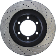 Les disques de frein sport percés et rainurés StopTech sont des disques de frein monobloc de remplacement direct pour les systèmes de freinage d'usine et les étriers de série qui ont fière allure derrière vos roues et offrent des performances de freinage considérablement améliorées. Le perçage transversal et le rainurage uniques facilitent la dispersion de la chaleur et de la poussière de frein, empêchent le glaçage des plaquettes, ajoutent du mordant et améliorent les performances de freinage sur sol sec et humide. Conçu pour durer, le revêtement électronique noir offre une protection contre la corrosion et la métallurgie à haute teneur en carbone (dans la plupart des applications) offre un fonctionnement plus silencieux, une meilleure résistance aux fissures et des performances accrues.