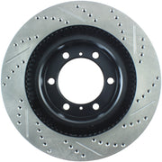 Les disques de frein sport percés et rainurés StopTech sont des disques de frein monobloc de remplacement direct pour les systèmes de freinage d'usine et les étriers de série qui ont fière allure derrière vos roues et offrent des performances de freinage considérablement améliorées. Le perçage transversal et le rainurage uniques facilitent la dispersion de la chaleur et de la poussière de frein, empêchent le glaçage des plaquettes, ajoutent du mordant et améliorent les performances de freinage sur sol mouillé et sec. Conçus pour durer ; le revêtement électronique noir offre une protection contre la corrosion et la métallurgie à haute teneur en carbone (dans la plupart des applications) offre un fonctionnement plus silencieux, une meilleure résistance aux fissures et des performances accrues.