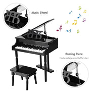 Stylish and Sturdy 30-Key Children's Grand Piano with Bench in Black