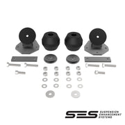 "Cette mise à niveau de suspension SES s'adapte à la suspension arrière d'un Chevrolet Equinox. Chaque pièce d'acier découpée au laser est pliée avec précision et revêtue de poudre pour garantir un ajustement de qualité. Nous avons conçu nos ressorts en caoutchouc creux pour offrir une rigidité progressive. En d'autres termes, plus le poids qui appuie sur les ressorts en caoutchouc est important, plus ils travaillent dur pour empêcher l'affaissement de l'arrière. Que vous tiriez une remorque ou que vous transportiez une lourde charge à l'arrière de votre véhicule, nos ressorts en caoutchouc creux s'ajustent automatiquement pour maintenir le véhicule à niveau à tout moment.