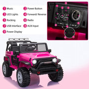 The TOBBI 12V Electric Ride-On Truck for Kids with Remote Control Let your child embark on thrilling adventures with The TOBBI 12V Electric Ride-On Truck for Kids with Remote Control. This incredible ride-on truck car is designed to provide endless fun and excitement for your little one. Whether they want to take control themselves or have you take the wheel with the included 2.4 GHz remote control, this remote control ride on truck offers a variety of features and functions that will make every playtime a memorable experience. Uniquely Angry Bird Look With its uniquely angry bird look, this ride-on truck car stands out from the crowd. Its eye-catching design will make your child feel like they're driving a real-life character from their favorite movie or game. It's the perfect ride-on toy for kids who love adventure and imagination. Easy Operation The TOBBI 12V Electric Ride-On Truck can be operated in two ways. Your child can take control using the steering wheel and foot pedal, allowing them to feel like a real driver. Alternatively, you can use the 2.4 GHz remote control to navigate the truck yourself, ensuring their safety and providing peace of mind for parents. Exciting Features One button start for quick and easy activation Double openable doors for easy access Safety belt to keep your child secure during their ride Power display to keep track of the battery level Music and horn for added fun and entertainment LED lights on the front and rear for enhanced visibility MP3 input and Bluetooth function to play your child's favorite tunes Volume adjustment for customizable sound levels Realistic engine sound for a more immersive driving experience Forward and reverse gears for versatile play Rocking function for an extra element of excitement Safety and Comfort The TOBBI 12V Electric Ride-On Truck prioritizes safety and comfort. It features a front and rear spring suspension system, ensuring a smooth and stable ride. The soft start function allows for gradual acceleration, while reliable braking ensures a safe stop. The comfortable seat comes with a safety belt, keeping your child secure throughout their adventure. Specifications Color: Rose Red Material: PP + Iron Suitable Ages: 3-6 years old Overall Dimensions: 46.4"L x 30.7"W x 30.1"H Net Weight: 42.99 lbs Max Weight Capacity: 110 lbs Motor: 35W550 x 2 Battery: 12V7AH x 1 Charger: 12V900MA Charging Time: 8-12 hours (use for 1 hour) Speed: 1.86-4.97 mph Remote Controller Battery: 2 x AA 7-Size Battery (not included) Package Includes 1 x Kids Ride-On Truck Car 1 x 2.4G Remote Control 1 x Charger 1 x User Manual
