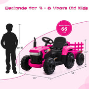 The TOBBI 12V Electric Tractor for Kids with Trailer and Dual Motors - Perfect Gift for Young Drivers is the ultimate ride-on toy for adventurous kids. With its sleek design and powerful dual motors, this electric tractor provides an exciting and thrilling experience for young drivers. Featuring a rosy color and made of durable PP material, this tractor is built to withstand hours of playtime. The overall dimensions of 53.74"L x 19.69"W x 20.67"H provide ample space for kids to comfortably ride and maneuver. With a weight capacity of 66.14 lbs, this tractor is suitable for children aged 3-6 years old.One of the key features of this electric tractor is its speed. With a range of 2-5 mph, young drivers can cruise around the neighborhood or backyard at a safe and thrilling pace. The trailer dimensions of 16.93"L x 13.39"W allow kids to transport their favorite toys or belongings while they ride.Designed with the theme of cars in mind, this electric tractor is perfect for young drivers who love all things automotive. The TOBBI brand ensures high-quality and reliable products that parents can trust. With its stylish design and exciting features, the TOBBI 12V Electric Tractor for Kids with Trailer and Dual Motors is the perfect gift for young drivers. Let your child's imagination run wild as they embark on exciting adventures with this ride-on toy. Get ready for endless fun and excitement with this top-of-the-line electric tractor.
