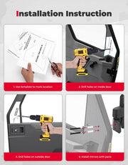 As for 1000 and XP 1000 Models, simply use the template to mark the location of the mirror on your UTV door, drill the holes, and attach the mirror with the provided hardware; As for Midsize Models, remove two caps from inside doors and drill holes. Install the mirrors with parts and reinstall two caps. *Reminder* Different Models are equipped with different parts.