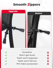 It features a specially designed zipper for easy entry and exit. The cloth-covered zipper design makes the zipper more durable and does not affect smoothness. The cloth covering on the zipper maximizes the separation of dirt and rainwater, prolonging the zipper's lifespan. Reflective marker design makes it easier to locate the zipper at night.