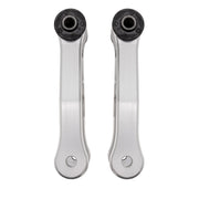 Upgrade those rusty old pressed sheet metal stock length dog bones with these stronger billet aluminum pieces. They come with new rubber bushings installed. We do not offer them with the polyurethane bushings installed because they will cause too much vibration. These are stock length dog bones, direct drop in replacement.