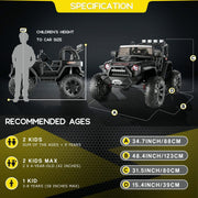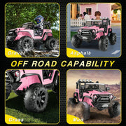 The 12V/24V Electric Jeep Truck ATV Ride-On Toy with Parental Remote Control for Kids Introducing the 12V/24V Electric Jeep Truck ATV Ride-On Toy with Parental Remote Control for Kids, the ultimate ride-on toy that will bring endless fun and adventure to your little ones. With its powerful motor, durable construction, and exciting features, this rc ride on toy is perfect for children aged 2-8 years old. Type 1: 12V 2x35W Electric Ride On Car ATV Quad Color: Pink/Black/Blue/White Motor: 35W*2 Battery: 12V - 4.5AH Material: PP, Iron Net Weight: 21.6 lbs Loading Capacity: 68 lbs Overall Dimensions: 34.6" L X 18.1" W X 20.1" H Recommended for Kids: 2-8 years old Speed: Low speed of 1.5mph, high speed of 2.8mph Key Features: Key start, high/low speed, USB, MP3 interface, power display, volume adjustment, slow start Charging Time: 6-8 hours Battery Life: Up to 60-90 minutes (Based on child weight) Certification: ASTM/F963, FCC, CE, ROHS The 12V 2x35W Electric Ride On Car ATV Quad is designed with your child's safety and comfort in mind. It features advanced slow start technology to protect your kids during their manual driving time, ensuring a smooth and gentle start. The kids-friendly seat provides a high level of comfort, fitting well with the kids' body shape. With variable driving speeds and directions, this ride-on ATV Quad offers super easy operation, freeing your kids from tiring learning. Your kids can simply turn on the power switch, choose the high/low speed, and forward/reverse direction, and then press the foot pedal to drive like a real car. The horn sound and simulative acceleration sound buttons on the steering wheel bring a fabulous realistic driving experience. The authentic appearance of this electric ATV Quad adds infinite fun to your child's playtime. With its rechargeable design, your kids can enjoy long hours of driving after a full charge. The power display reminds you to charge it in time. The MP3 and USB socket allow your kids to listen to their favorite songs and music while cruising around. The bright LED headlights light up the surroundings in the darkness. Equipped with large diameter wear-resistant wheels, this ATV Quad can ride on any terrain, including grass, beach, rubber track, cement ground, and more. Your kids can enjoy themselves indoors or outdoors, thanks to the low center of gravity and 4 wheels featuring large diameter that provide great stability and safety. The 12V 2x35W Electric Ride On Car ATV Quad is the ideal toy to accompany your kids on their adventures. Its cool and stylish design is sure to captivate your little racers, allowing them to experience the thrill of driving just like the grownups. Let this ride-on ATV Quad create cherished childhood memories for your kids. Type 2: 12V 2*30W 2-Seaters Electric Ride On Truck Car Color: Pink/Black/White/Red Recommended Age: 3-7 years Material: PP and ABS plastic, metal Battery Type: 12Volt 7AH Motor Type: 30W * 2 Maximum User Weight: 67 lbs (30 kg) Maximum Speed: 3-5 km/h (3 mph) Charging Time: 8-12 hours Run Time: 2-2.5 hours (depending on the child's weight and speed) Music Function: AUX & USB port / Bluetooth / built-in music Controller Batteries: 2 AAA batteries (not included) Overall Size: 38.5 inches (L) x 23.5 inches (W) x 26 inches (H) Are you looking for an incredible gift for your children? The 12V 2*30W 2-Seaters Electric Ride On Truck Car is the perfect solution! This kids' motorized SUV is designed to provide entertainment, hands-on education, and safety in a fantastic driving experience. It features a parental remote control, LED lights, Bluetooth, MP3 player, and a wider seat with an adjustable seat belt. The soft-start technology prevents children from being frightened by sudden acceleration or braking, ensuring a smooth and safe ride. The 4 wear-resistant wheels are equipped with a spring suspension system, providing a safer and smoother driving experience for kids. Suitable for ages 3-7 years, this ride-on truck car is an excellent choice as a gift for birthdays and festivals, accompanying your children's growth and guarding their driving dreams. With its high-performance 30W dual-drive motor and 12V 7AH battery, this ride-on truck car offers plenty of fun time for your kids. It can be operated by kids themselves using the steering wheel and pedals, or controlled by parents using the 2.4G remote control for added safety. The built-in music player, AUX/USB ports, and Bluetooth connectivity allow you to connect your device and play your child's favorite music, songs, and nursery rhymes, enhancing their driving pleasure. The multifunctional operation panel of this toy car includes an oversized color LED display, speed adjustment, simulated car-style horn, music playback and volume adjustment, forward and reverse control keys, and a one-touch start button, stimulating unlimited driving fun for your kids. The upgraded configurations, such as the 30W*2 strong motor and spring suspension device, provide a more powerful and comfortable driving experience. Your child's safety is our top priority. The 12V 2*30W 2-Seaters Electric Ride On Truck Car has passed ASTM F963 & CPSIA Children Product Certification, ensuring its safety and durability. It is equipped with a two-point safety belt, lockable double doors, shock-absorbing and anti-skid tires, providing a safer guarantee for your child's driving pleasure. Type 3: 24V 2x200W 2 Seater Electric Ride On Truck Color: Pink/Black/Yellow/Green/Blue/White Recommended Age Range: 3-9 Material: PP and ABS plastic, metal Charging Time: 8-12 hours Year: 2022 Suspension: Spring Suspension Age Level: 3-4 Years, 4-7 Get ready for the ultimate driving adventure with the 24V 2x200W 2 Seater Electric Ride On Truck. This ride-on truck features two modes of operation, allowing both parent and child to enjoy the fun. In parent-child remote control mode, you can control the car through the remote control, ensuring the safety of your child. In steering wheel and ped