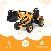 The 12V Battery Powered Kids Excavator Dumper Truck with Front Loader Digger is not just a toy, it's an adventure waiting to happen. Designed to mimic adult construction excavators, this ride-on toy is perfect for little ones who love to explore and play. With its realistic look and feel, it helps to develop children's hand-eye coordination, dexterity, and confidence. Your kids will feel like real construction workers as they operate the excavator's functions of forwarding, backward, stop, and two speeds. The arm extends for even more realistic play, allowing your little ones to dig and scoop just like the real thing. Made with durable and wear-resistant materials, this kids digger is built to withstand the rough and tumble play of adventurous children. The body is made of waterproof and non-toxic PP raw material and ironware, ensuring safety while riding. The extra wide wheels are also made of wear-resistant materials, making them strong enough to withstand slight collisions. Plus, the waterproof, easy-to-clean, and durable surface will satisfy every parent's desire for a long-lasting toy. Safety is a top priority with this well-designed ride-on construction vehicle. It features a comfortable seat with a safety belt, providing a secure and comfortable driving environment for your little ones. The simulated decoration with stable joints adds to the realistic feel, while the spacious pedal and easy-to-operate buttons make it simple for your kids to control the excavator. The sensitive handle allows them to enjoy digging at a low or high speed, giving them the freedom to explore and have fun. With a long battery life, this excavator ensures that your little ones can abundantly enjoy their playtime. It has an external side charging port and needs to charge for 8-12 hours. Once fully charged, your kids can continuously play with it for 1.5 hours. This means hours of fun and excitement, allowing their imaginations to run wild as they dig, scoop, and explore their surroundings. The adjustable sturdy arm of the front loader allows for flexible movement, making it easy for your kids to scoop up sand, snow, or even toys. The fully functional backhoe digger is equipped with a strong front loader that can perform multiple joint activities, giving your little ones endless possibilities for play. Whether it's digging in the sandbox or carrying their favorite toys, this excavator is sure to bring joy and adventure to every playtime. Our 12V Battery Powered Kids Excavator Dumper Truck with Front Loader Digger is made with high impact blow molded resin body, ensuring its durability and easy-to-clean material. It's a non-toxic toy that is safe for children to play with. The ride-on toy is pedal-powered, making it easy for your kids to move and dig. The convenient handle allows for easy operation, giving your little ones full control of their excavator adventures. The comfortable and spacious seat is designed with safety in mind, featuring a safety belt to provide a secure driving environment for your kids. The digger bucket has a good load-bearing capacity, with a maximum load capacity of 6 lbs. This means your little ones can carry their favorite toys or even small amounts of sand or snow as they explore their surroundings. With functions of forwarding, backward, stop, and high/low speed, this excavator gives your kids the freedom to dig, scoop, and explore at their own pace. It's suitable for children with ages ranging from 37 to 96 months, making it a great gift for birthdays and holidays for both boys and girls. Let their imaginations run wild as they embark on exciting construction adventures with their very own ride-on excavator. Specifications: Color: Yellow Material: Plastic, ironware Size: 59" x 24.5" x 29.5" (L x W x H) Weight: 39 lbs Load capacity: 66 lbs Ambient temperature: 0-40 degree centigrade Speed: 2.5 km/h- 5km/h Battery: 6V 7AH *2 Charging period: 8-12 hours each time Get ready for hours of adventurous play with the 12V Battery Powered Kids Excavator Dumper Truck with Front Loader Digger. Order yours today and watch your little ones' imaginations soar as they embark on exciting construction adventures!