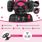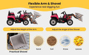 The 12V Battery-Powered Kids Excavator Toy with Adjustable Arm and Bucket is the perfect ride-on toy for your little construction enthusiast. With its realistic digging experience and adjustable arms and bucket, kids can freely control the bucket's height and angle, allowing them to pretend to dig and engage in exciting role-playing fun. Please note that the shovel is for decoration purposes only and loading is not allowed.This rc ride on excavator offers both manual operation and remote control options. Kids can use the operation lever to move forward or backward, the steering wheel to change direction, and the foot pedal to accelerate. For added convenience, parents can also control the excavator using the remote control (requires 2 AAA batteries, not included).To enhance the driving experience, this vehicle is equipped with multiple entertainment functions. It features LED headlights, a fun horn, and a wireless connection. The music panel even has a USB port, allowing you to connect external devices for even more music options. Your little one will have a blast riding around with these exciting features.Safety is a top priority with this ride-on excavator. It has a slow start function, ensuring a safe and steady start. The 4 wide wheels are durable, anti-slip, and wear-resistant, allowing for smooth rides on various surfaces such as brick roads, cement roads, wood floors, and asphalt roads. The comfortable seat with a safety belt and wide footrests provide additional safety and comfort. Rest assured, this excavator has passed ASTM and CPSIA certifications for added peace of mind.This 12V Battery-Powered Kids Excavator Toy with Adjustable Arm and Bucket makes for a perfect gift for toddlers aged 3-8 years old. Its beautiful color and realistic excavator outlook will immediately capture their attention. Made of safe and durable materials, this digger is built to last and will provide years of enjoyment for your little one.Why Buy Our Item?- Bucket handle to adjust the bucket's height and angle- 2 operation modes: Kids manual control or remote control- Bright headlight, fun horn, USB, and wireless connection for more fun- Slow start function avoids hurt caused by sudden acceleration- Anti-slip and wear-resistant wheel for smooth riding- Able to drive on brick road, cement road, wood floor, asphalt road, and more- Spacious seat with backrest and wide footrest for seating or riding comfort- ASTM and CPSIA certifications add more security- Designed with attractive colors and a realistic excavator outlook- High-quality materials for long-term use- Convenient charging port and 12V rechargeable battery for easy charging- Able to promote kids' hand-feet coordination and motor skillsSpecifications:- Color: Pink- Material: PP + steel- Overall dimension: 49" x 20" x 20.5" (L x W x H)- Seat size: 11" x 5.5" (L x W)- Speed: 1.9-5 mph- Battery: 12V 7AH- Charger: 12V- Charging time: 8-12 hours- Load capacity: 66 lbs- Suitable age: 3-8 years old- Net weight: 27.5 lbs
