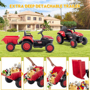 12V Battery Powered Ride-On Tractor with Trailer for Kids