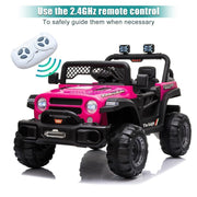 The 12V Battery Powered Ride On Truck with 2 Front LED Lights is the perfect gift for kids who love adventure and excitement. This ride-on truck features a sleek design with 2 front LED lights that add a touch of style and functionality. With its powerful 12V battery, this truck provides hours of endless fun and entertainment for your little ones.Safety is always a top priority, which is why this rc ride on truck is ASTM-Certified and comes with an automatic reset fuse for protection circuit. The soft start technology ensures a smooth and gradual acceleration, preventing any sudden movements that could potentially be dangerous for kids. Additionally, the adjustable seat belt provides a secure and comfortable ride.One of the standout features of this ride-on truck is the built-in AUX outlet, allowing kids to plug in their media devices and enjoy their favorite music while cruising around. Whether it's their favorite songs or audiobooks, your child can have a personalized driving experience. The 2.4G remote control with 3 different speed modes gives parents the option to let their child drive manually or safely guide them using the remote control.This ride-on truck is made from high-quality PP plastic and metal, ensuring durability and long-lasting performance. It is available in a range of vibrant colors including black, pink, white, blue, and rose red, allowing your child to choose their favorite color.Specifications:- Brand: LEADZM- Theme: Cars- Body Material: PP Plastic- Battery Brand: Tianneng- Battery Parameters: 12V 4.5AH- Test Certificate: ASTM- Overall Size: 41.9" x 28.2" x 28.1"- Suitable Age: 3-6 years- Weight Capacity: 30KG- Speed: 3-6KM/H- Charging Time: 8-12 Hours- Working Time: 1 Hour- Recommended Environment: Indoor & Outdoor- Assembly Required: Yes (With Manual)- Controller Battery: 2xAAA 1.5V (Not Included)- Remote control: 2.4GHZPackage Includes:- 1 x Electric Car- 1 x 2.4G Remote Control- 1 x Charger- 1 x ManualLet your child embark on thrilling adventures with the 12V Battery Powered Ride On Truck with 2 Front LED Lights. With its impressive features and specifications, this ride-on truck is sure to bring joy and excitement to your little one's playtime.