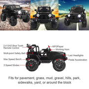 The 12V Electric Battery Powered Kids Ride-On Truck with Remote Control is the perfect gift for children ages 3-8. This fantastic and functional ride-on truck features a sleek and sporty design that is sure to capture the imagination of your little ones. With its comfortable seat and safety belt, your children will be able to ride in style and safety. The truck is battery operated and provides continuous fun for about 120 minutes. It also stops on the release of the foot pedal, ensuring that your children can easily control their ride. One of the key features of this rc ride on truck is its 3-speed suspension forward and backward function, allowing your children to drive at their own pace. The truck is engineered to drive on flat surfaces and comes with LED headlights and spring suspension for a smooth and comfortable ride. It also has a horn and IC sounds, adding to the excitement and adventure of the ride. The 12V Electric Battery Powered Kids Ride-On Truck with Remote Control also has some additional specifications that make it even more appealing. It has openable doors, allowing your children to easily get in and out of the truck. It also has an MP3 function with USB and SD interface, so your children can listen to their favorite music while they ride. The truck comes with a remote control, giving parents the ability to control the truck if needed. This ride-on truck is made from high-quality PP material and is ASTM-F963 certified, ensuring its safety and durability. It has a weight capacity of 66.13lbs and dimensions of (47.64x31.50x 30.71)"/(121x80x78)cm (LxWxH). The truck comes with a rechargeable 12V 7Ah battery and requires a charging time of 6-8 hours. It also requires 2xAAA 1.5V batteries for the remote control (not included). Assembly is required for this ride-on truck, but it comes with a user manual to guide you through the process. The seat dimensions are (15.35 x 9.45)" / (39 x 24)cm (L x W) and the wheels have a diameter of 12.60"/32cm. This ride-on truck is suitable for both indoor and outdoor use, providing endless fun and adventure for your children. With its stylish design, safety features, and additional specifications, the 12V Electric Battery Powered Kids Ride-On Truck with Remote Control is the perfect toy for children ages 3-8. Whether they're driving around the neighborhood or exploring their own backyard, this ride-on truck will provide hours of fun and excitement. Specifications: Material: PP (Polypropylene Thin Iron) Charging Time: 6-8 Hours Working Time: 1-2 Hours Recommended Environment: Indoor & Outdoor Color: Pink/Black/White/Red Weight: 23kg / 50.71lbs Dimensions: (47.64 x 31.50 x 30.71)" / (121 x 80 x 78)cm (L x W x H) Included Battery: Rechargeable 12V 7Ah Controller Battery: 2 x AAA 1.5V (Not Included) For Children Age: 3-8 Years Old Assembly Required: Yes (With Manual) Seat Dimensions: (15.35 x 9.45)" / (39 x 24)cm (L x W) Wheels Diameter: 12.60" / 32cm Capacity: 66.13lbs / 30kg