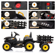 12V Electric Ride-On Kids Tractor with Battery Powered Toy Car and Trailer