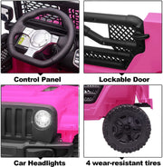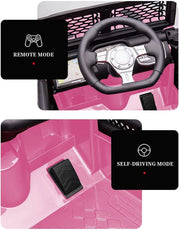 The 12V Electric Ride On Truck for Kids with Remote Control and LED Lights is the perfect toy for adventurous little ones. This ride-on truck car is designed with safety and fun in mind, making it an ideal choice for children aged 37-95 months. With its ASTM F963 Certification, you can rest assured that this toy meets American safety standards.Made with durable and non-toxic plastic, this remote control ride on truck car is built to withstand hours of playtime. The adjustable seat belt and lockable doors provide added protection for your child, while the maximum weight capacity of 61.6 lbs ensures that it can accommodate most children. The ride-on truck car also features a maximum height limit of 1.25m, making it suitable for a wide range of ages.But the fun doesn't stop there! This ride-on truck car offers a fully-functional driving experience that kids will love. With speeds ranging from 1.86 mph to 3.1 mph, your child can cruise around in style. The headlights, startup sounds, and openable doors add to the authenticity of the driving experience.Whether your child wants to ride indoors or outdoors, this ride-on truck car has got them covered. The four wear-resistant PP wheels, equipped with a shock-absorbing system, ensure a smooth and comfortable ride on any surface. So whether it's on the sidewalk or in the living room, your child can enjoy a safe and enjoyable ride.Assembly is a breeze with this ride-on truck car. Simply follow the steps in the user manual to get started. And if you have any questions, our team is here to provide you with the most professional after-sales service.Key Features:- ASTM F963 Certified for safety- Durable and non-toxic plastic construction- Adjustable seat belt and lockable doors for added protection- Maximum weight capacity of 61.6 lbs- Maximum height limit of 1.25m- Speeds ranging from 1.86 mph to 3.1 mph- Headlights, startup sounds, and openable doors for an authentic driving experience- Four wear-resistant PP wheels with a shock-absorbing system for a smooth ride- Easy assembly with user manual guidanceProduct Specifications:- Color: Red/Black/Rose/White/Pink- Material: Plastic Shell + PP Wheels- Battery: 12V 4.5A*1- Maximum loading capacity: 30KG (66 lbs)- Product size: 100×65×72cm (39.37 L x 25.59 W x 28.35 H Inches)- Speed: 3-5 km/h- Charge/Use time: charge 8-12h, use 1-2h- Charger Input: 120-240V Output: 12V 500mA- Remote control: AAA1.5V- Seat: Only one child can sitPlease note:1. For the first use, please charge the battery for 8-12 hours to avoid damage.2. If you have any other questions, please feel free to contact us for professional after-sales service.Theme: CarsCharacter Family: Kids Ride On Truck CarAge Level: 3-4 YearsBrand: Ufurpie