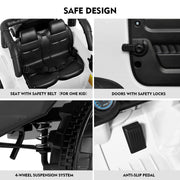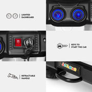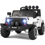 The 12V Kids Ride On Truck Car with Remote Control, LED Lights, 3 Speeds, and Music Storage Introducing our new fantastic and functional 12V Kids Ride On Truck Car, designed for your lovely children. This ride-on car is ideal for children over 3 years old, providing them with an exciting and adventurous way to explore their surroundings. Equally enjoyable for parents, the 2.4G remote control allows you to take control and drive your children around, ensuring their safety and enjoyment. The 12V Kids Ride On Truck Car features a comfortable seat and an MP3 aux, creating an enjoyable environment for your children as they play. With its 4-Wheels and spring suspension system, this remote control ride on truck car offers a smooth and comfortable ride. The seat belt and double lockable door design provide added safety, making it the perfect gift for both outdoor and indoor playing. Key Features: Two modes of operation: Kids can operate the electric car themselves using the pedals and steering wheel, enjoying the thrill of driving at 2 different speeds. Parents can also take control using the 2.4GHz remote control, which offers three speeds. Multiple and joyful functions: The built-in AUX port, USB, TF slot, music, and story options, as well as Bluetooth connectivity, enhance your child's driving journey, making it more enjoyable and entertaining. High-bright LED lights: The LED lights not only provide visibility but also add a cool factor to the driving experience, making your child feel super cool when driving at night. Safety and comfort: The slow start function reduces the impact of sudden acceleration on children, ensuring a safe and smooth ride. The door with a safety lock and the seat with a safety belt further enhance the child's safety and comfort. Additionally, the rear tire can be used as extra storage space for toys, snacks, and more. Durable and portable design: Made of non-toxic PP and iron, this electric vehicle for kids is built to last. The wheels with a spring suspension system are suitable for all kinds of roads, including asphalt, brick, and cement roads. The luggage handle allows for easy transportation and outdoor adventures. Product Specifications: Color: White Battery: 12V7AH Charger: 12V700mA Motor: 390-16000*2 Play Time: 1-2 hours Loading Capacity: 66 lbs Speed: 2.9-3.5 km/h Size: 47''x28''x28'' Height Limit: 43.3'' With its 12V7AH large-capacity battery, equipped with overcharge and overload protection, and powered by 2 powerful motors, the 12V Kids Ride On Truck Car ensures a long-lasting and thrilling ride for your children. It is the perfect present for your child's birthday or Christmas, providing them with endless fun and excitement. Package Content: 1 x Electronic Toy Car 1 x Hardware Bag 1 x Manual Instruction 1 x Bluetooth Remote Control