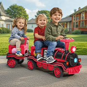 12V Two-Seater Electric Ride-On Train for Kids with Music and Lights, Red/Blue