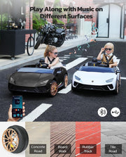 The 12V10Ah Electric Black Lamborghini Ride-On Car for Kids - 2 Seater with Remote Control is the ultimate ride-on car for your little ones. With its sleek and stylish design, this car is sure to turn heads as your child cruises around in style. The ergonomic and spacious 20.5'' two-seat comfort design allows for a realistic driving experience, perfect for friends or siblings to enjoy together. Plus, it can bear a maximum load of 130 lbs, ensuring durability and safety for your child. With 2 driving modes, the XL 2-seater Lamborghini car offers versatility and excitement. Kids can take control and drive the car themselves using the steering wheel and pedal, with speeds of 2.5/3.7mph. For added convenience and safety, parents can also adjust the speed and direction using the remote control, which has 3 speeds of 2.5/3.1/3.7mph. The 2.4g remote control has a range of up to 25m, allowing parents to have full control over the car. Safety is always a top priority, and this ride-on car is equipped with 2 large shock absorption springs that have undergone over 300 impact tests. This ensures a smooth and comfortable ride on various surfaces such as asphalt roads, concrete roads, boardwalks, and tile roads. The exceptional wheel-fitting technology and slow start feature guarantee your child's safety at all times. Entertainment and learning go hand in hand with this ride-on car. It is designed with USB and Bluetooth capabilities, allowing your child to enjoy their favorite music and stories while driving. This not only provides entertainment but also enhances cognitive abilities, promotes hand-eye coordination, and adds to the overall enjoyment of the Lamborghini experience. The reinforced battery and powerful 35W motors ensure long-lasting playtime and efficient operation. The 12V 10Ah battery provides excellent endurance, and when the battery is low, a warning system will sound, alerting you to recharge the car. Additionally, the built-in wheels at the bottom of the car make it easy to tow and bring home when the power runs out. With front and rear lights that perfectly replicate the cool Lamborghini lights, your child can enjoy the ride day or night. The attention to detail in the design of this ride-on car is truly remarkable. Key Features: XL 2-seater design for a realistic driving experience 2 driving modes: manual and remote control Speeds of 2.5/3.7mph for kids' control and 2.5/3.1/3.7mph for remote control 2 large shock absorption springs for a smooth ride Suitable for various surfaces USB and Bluetooth capabilities for music and stories Reinforced battery and powerful 35W motors Low-battery warning system Built-in wheels for easy towing Front and rear lights for added realism Product Specifications: Wider Seater: 20.5" Speed: 2.5-4.0 Mph Motors: 2*45W Charging Time: 8-12 H Play Time: 45"-90" Parent Remote: 2.4G remote control Kids' Ages: 3-8 years old Load Capacity: 140 Lbs Get ready for an unforgettable ride-on car experience with the 12V10Ah Electric Black Lamborghini Ride-On Car for Kids - 2 Seater with Remote Control. Order yours today and let your child's imagination run wild!