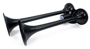 Experience the potent blast of the HornBlasters 2-Chime Air Horn, masterfully engineered for the audibly adventurous. This stealth black masterpiece comes with a pre-installed 1/4" 12-volt air valve, seamlessly blending high performance with an aesthetic that means business. Its high-pitched tone is not only distinctive but assertive, making your presence known whether you're on the road or making waves at sea.