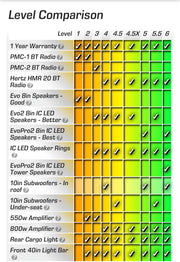 • Customizable Audio Options:Ā Three levels of high-performance speakers and radios to choose from and multiple amplifier options as well as the ability to add up to three 10ā€ subwoofers for a heart-thumping experience