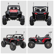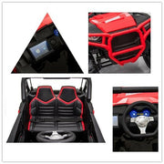 Get ready to ignite your child’s sense of adventure with the Tiger Cubs 12V 2-Seater Kids Electric Ride-On Off-Road UTV Truck — a thrilling addition to any young driver’s collection. This dynamic ride-on truck is crafted to deliver the ultimate off-road experience, combining power, style, and advanced features that will captivate your little explorer for hours on end. Imagine your child gripping the steering wheel of their very own rugged truck, feeling the excitement as they control every turn, speed, and sound. This kids' truck isn’t just a toy; it’s a gateway to imaginative play, discovery, and outdoor fun that fosters confidence and creativity. Whether they’re cruising around the yard or venturing on a family outing, this ride-on truck promises non-stop entertainment and realistic driving thrills. Unleash the Adventure with Exceptional Features Two Wide Seats with Safety Belts: Perfect for sharing the fun, this ride-on truck features spacious seating designed for two kids. The built-in safety belts ensure your little ones can cruise together securely, turning solo drives into buddy adventures that encourage social play and teamwork. Powerful 12V Dual Motors: Equipped with two 200W motors, this truck boasts impressive power that propels your child forward at speeds ranging from 1.8 to 5 mph. This means a smooth and steady ride that’s both exhilarating and safe for children ages 3 to 8. Four 15.75" Traction Wheels with Spring Suspension: These rugged tires and spring suspension work together to absorb shocks and provide superior grip on various terrains. Your child can confidently take on grass, gravel, or pavement, experiencing true off-road freedom and stability. Remote Control with Speed Control: Parents can join the fun by taking over with the 2.4GHz remote control, allowing you to steer, accelerate, or stop the truck as needed. This feature offers peace of mind and makes it easy to guide younger riders safely while they learn the ropes. Working Headlights and Taillights: Adding to the authentic driving experience, the fully functional lights let your child drive into twilight with style, lighting the way for every expedition and boosting imaginative play scenarios. Music and Connectivity Options: The truck includes pre-installed tunes and allows connection via USB, TF card, Bluetooth, and aux cord inputs. Your child can jam out to their favorite songs, turning every ride into a dance party on wheels that keeps the energy high and spirits bright. Steering Wheel and Foot Pedal Controls: Empower your young driver with intuitive in-car controls, including a steering wheel for precise turns and a foot pedal to accelerate and brake. These realistic controls enhance hand-eye coordination and build driving skills in a fun, interactive way. Two Cup Holders: Thoughtfully placed behind the seats, the cup holders ensure your child stays hydrated and ready for adventure, making longer rides even more comfortable and enjoyable. Specifications That Drive Fun and Safety Color: Sleek and bold Black finish, perfect for a cool, off-road look. Materials: Durable plastic and metal construction ensures long-lasting play and withstands the rigors of energetic use. Dimensions: Measuring 51.25" long, 33.5" wide, and 35.75" high, this truck offers ample room for your child to ride comfortably while remaining compact enough for backyard adventures. Seat Size: Each seat spans 20.5" long, 7.75" wide, and 11.75" high, designed for growing children to sit securely and comfortably. Speed Range: Adjustable speeds from 1.8 to 5 mph provide safe, exciting pace options tailored to your child’s confidence level and experience. Weight Capacity: Supports up to 77 lbs, accommodating two young riders for shared joy and companionship. Battery: Equipped with dual 24V 7Ah batteries that deliver up to 45 minutes of continuous driving, depending on speed and terrain, ensuring hours of uninterrupted fun. Charger: Comes with a reliable 12V, 1000mA charger for quick and easy recharging, so the adventure never has to stop for long. Net Weight: Weighing 61.5 lbs, the truck balances sturdiness with manageable size for parents during transport or storage. Recommended Ages: Designed for children ages 3 to 8 years old, this ride-on truck grows with your child and is perfect for early drivers ready to take the wheel. Safety Certifications: Meets ASTM F963 and CPSIA standards, providing assurance that your child’s ride is both safe and reliable. Why Choose the Tiger Cubs Ride-On Truck? When you invest in this ride-on truck, you’re gifting more than just a toy—you’re opening up a world of endless adventure where your child can build confidence, coordination, and creativity through play. The ability to control the truck either by steering wheel or with the parental remote control creates a perfect balance of independence and safety, making it ideal for parents and kids alike. With its authentic design, powerful motor, and fun tech features like Bluetooth music and working lights, your child will feel like the king or queen of the off-road. Plus, the spacious two-seater layout means no one has to ride alone, fostering friendships and shared moments of joy. Whether it’s a race around the backyard or a slow cruise through imaginary terrains, this truck fuels every child’s need for speed and exploration. Don’t just give a ride-on toy—give a ticket to thrilling journeys filled with laughter, music, and unforgettable memories. The Tiger Cubs 12V 2-Seater Kids Electric Off-Road UTV Truck is ready to roll whenever your little adventurer is. Are you ready to watch their eyes light up with pure excitement?