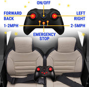 The 2023 Ford F450 24v 2 Seater Children's Electric Ride-On Truck with Interchangeable Battery is the perfect adventure companion for your little ones. This licensed Ford F450 ride-on truck is designed for kids ages 3 to 7 years, with a maximum combined rider(s) weight of 120 lb. Get ready to embark on thrilling rides with this powerful ride-on truck that is packed with fun features. Key Features: Longer driving time and easy charging with a swappable removable 24V battery Overcharge and overload protection for the battery Realistic engine start sound and LED lights for an immersive experience Choose from 2 to 7 mph forward and reverse speeds with the realistic gear Parent remote control for full control of the car Convertible safety seat belt for added safety Built-in Bluetooth phone connector to play music Longer range parent remote control Foam rubber tires for smooth rides on all pavements Bright LED lights all around the car for a stylish look Battery life display and FM radio for entertainment Let your little one drive for hours with the 2023 Ford F450 24v 2 Seater Children's Electric Ride-On Truck. Charging is made easy with the removable battery that can be taken out with the handle and connected to the charger. You can even use multiple batteries so that the fun never stops. Whether you choose to charge the battery inside or outside the car, your little one can enjoy uninterrupted rides for hours without the need to charge every time. This ride-on truck is designed to accommodate two toddlers comfortably. The soft leather seats and adjustable seat belts ensure a safe and comfortable ride for both passengers. The seats can be moved for the perfect adjustment, just like a real car. With its advanced multiplayer system, battery life is displayed on the dashboard so you know when it's time to charge. You can also play music or audio books by connecting your phone via Bluetooth. The built-in FM radio allows you to find local radio stations to play your little one's favorite tunes. Plus, the volume control feature lets you adjust the music to your desired level. Parents have full control of the car with the included remote. You can drive your little one until they learn how to drive themselves. The remote gives you the ability to overpower and stop the car at any moment, ensuring their safety. The 2023 Ford F450 24v 2 Seater Children's Electric Ride-On Truck also comes with a custom car cover to protect your toy car in storage, as well as removable rubber floor mats to keep it clean. Get ready for endless adventures with the 2023 Ford F450 24v 2 Seater Children's Electric Ride-On Truck. Order yours today and let your little ones experience the thrill of driving their very own Ford F450 truck! Product Specifications: Brand: Moderno Kids Year: 2023 Theme: Cars Age Level: 1-2 Years, 3-4 Years, 4-7 Years Overall Size: 47'' x 31'' x 31'' Motor: 2x Powerful Custom 775 Motors Speed Range: 2-6 mph Speed Control: Manual (3 speeds), Remote (3 speeds) Safe Protection: Rubber tires, Two seats, Two seat belts, Leather seat, Adjustable seat, Door with locks Entertainment Setting: Sound System, LED Lights, FM Radio, Bluetooth Phone Connection, Volume Control Age Group: 3-7 years