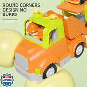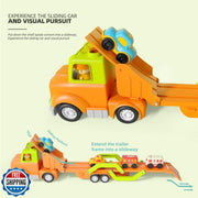 Unleash Adventure with the Ultimate 5-in-1 Play Truck and Car Set Imagine a world where every playtime becomes a thrilling expedition. You’re about to introduce your little one to the most versatile, imaginative, and engaging ride-on transport experience they’ve ever encountered. The 5-in-1 friction-powered transport trailer is not just a toy; it’s a dynamic playground on wheels. Crafted for children aged 18 months through 5 years, this 24-inch long powerhouse combines the joys of a large flatbed truck and four vibrant mini cars into one spectacular set that transforms at your child’s command. A Complete Playtime Ecosystem Open up a universe of possibilities with this ingenious design. At its core, the toy features a detachable truck cab that attaches to a 24-inch flatbed body, unfolding effortlessly into a slide. Inside, four brightly colored small cars rest obediently, ready for the day’s next adventure. When the cab detaches, your child can push, pull, and steer their way to new discoveries—strengthening leg muscles, nurturing coordination, and igniting their inner driver. Then, with a simple unfold, the flatbed becomes an exciting slide runway for the mini cars, turning ramps into launchpads for happy, giggling races. Key Features & Benefits 5-in-1 Transport Trailer Includes one large transport truck and four mini cars. Truck cab easily detaches, offering a separate push-and-pull ride-on experience to develop gross motor skills. Flatbed unfolds into a realistic 24-inch slide, sparking endless imaginative play and design-your-own race tracks. BPA-Free ABS Construction Non-toxic materials ensure your child’s safety at every twist and turn. Smooth, rounded edges protect tiny hands and delicate skin from bumps. Durable enough to withstand countless play sessions without losing its vibrant charm. Friction-Powered Motion No batteries required—simply push the truck or cars forward to see them zoom into action. Encourages your child’s physical activity and coordination through interactive, self-powered fun. Teach cause and effect as they learn how much push creates just the right speed. Realistic Lights and Sounds Press the cabin button for engine-start lights and sounds that mimic a real truck coming to life. Switch modes to enjoy a cheerful horn honk melody or upbeat musical tune that keeps the energy high. Stimulates auditory senses and encourages role-play scenarios, from a busy construction site to a race day rally. Educational Development Tool Pushing, pulling, and steering builds gross motor skills, leg strength, and balance—ideal for beginner walkers. Sliding the mini cars down the ramp teaches fine motor coordination and hand-eye precision. Inventive play fosters creativity, storytelling, and problem-solving as your child plans out delivery routes and race circuits. Why Kids and Parents Love It From the moment they lay eyes on the bold colors and sturdy design, children are drawn into a world of exploration. They feel empowered as they maneuver the ride-on truck cab, imagining themselves delivering precious cargo across make-believe cities in the playroom. When they detach the flatbed, they learn independence and grow confident in their ability to operate their own mini vehicle. Parents appreciate the careful attention to safety—no sharp corners, non-toxic plastic, and a secure slide mechanism that never pinches little fingers. Perfect Gift for Every Occasion Choosing a gift can be overwhelming, but the 5-in-1 friction-powered truck and car set stands out as a thoughtful, versatile present that suits birthdays, holidays, and surprise rewards. It bridges age ranges, making it an ideal hand-me-down that remains fresh and engaging for years. Because it’s designed for ages 18 months to 5 years, siblings of different ages can play together, building shared memories and cooperative adventures. Product Specifications Overall Length (flatbed unfolded): 24 inches Materials: BPA-free ABS plastic Recommended Age: 18 months – 5 years Power Source: Friction-powered, no batteries required Weight: Lightweight design for easy handling by toddlers Colors: Bright primary hues on all vehicles How to Make the Most of Playtime Set up a “construction zone” using pillows, books, and blankets. Let your child practice ramping their mini cars for extended sliding distances. Create a delivery mission: Hide small toys or building blocks around the room that need to be “picked up” with the truck and delivered to a designated spot. Host a mini car rally. Invite friends or siblings to line up their cars, call out countdowns, and cheer victories—fueling social skills and cooperative play. Incorporate storytelling: Encourage your child to describe where they’re driving, who their passengers are, or what cargo they transport. This deepens language development and creativity. Parent Tips for Added Fun Use colored tape on the floor to create lanes and racetracks, guiding route planning and boosting spatial awareness. For sensory play, lay a sheet of wax paper under the slide to simulate an icy roadway—watch mini cars skid and spin for added giggles. Introduce simple math by counting mini cars, sorting them by color, or timing their slide runs with a stopwatch. Your Next Adventure Awaits Every child deserves a playtime experience that’s as safe as it is exciting. The 5-in-1 friction-powered transport trailer and car set exceeds expectations by combining educational value, imaginative freedom, and robust safety features. You’re not just giving them a set of wheels—you’re gifting them the keys to a boundless world of creativity and joy. Gear up for endless races, daring rescues, and epic transports. Order today and watch your little roadster embark on their greatest journey yet!