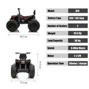 24V Children's Electric ATV Ride-On Toy, Rubber Tires, Hand Accelerator, Music Player, LED Illumination