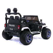 24V Dual Seater Children's Electric Police Vehicle, Off-Road Truck Jeep, 2 High-Powered Engines, Pneumatic Wheels, Remote Control Operation