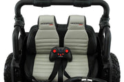 The 24V Dual Seater Children's Electric Police Vehicle, Off-Road Truck Jeep, 2 High-Powered Engines, Pneumatic Wheels, Remote Control Operation is the ultimate ride-on toy for adventurous kids. Suitable for boys or girls ages 3-6 years old, this truck car provides endless fun and excitement. With a maximum combined rider weight of 100 lb, it can accommodate two riders or a single rider under 4 years old.This battery-powered ride-on truck car is equipped with a removable large capacity 24V power battery. It has overload protection to ensure safety during playtime. The truck car features two powerful custom 775 motors, providing impressive performance. It offers two forward speeds and one reverse speed, with a maximum speed of 2-5 mph. The forward/park/reverse shifter switch allows for easy control.The truck car comes with a full function long-range 2.4Ghz parental remote control, giving parents complete control over the ride. The remote control even has a stop function for added safety. The soft start and electric brake system ensure gradual acceleration and reliable braking.One of the exciting features of this ride-on truck car is the upgraded drive train with 4 stage gearboxes. It uses hybrid steel/nylon gears with bearings and powerful custom dual 775 motors, providing a smooth and powerful ride. The wide track zero maintenance EVA foam rubber tires offer good traction and a comfortable, quiet ride. They also come with LED lights, adding a cool and stylish touch.This truck car is designed with realistic working LED headlights, LED light bars, tail lights, dashboard lights, and gauges. The doors and hood are also openable, adding to the realistic experience. The front and rear spring shock absorbers provide a smooth ride, even on rough terrains. The underbody soft glow blue LED light kit is preinstalled, creating a cool and eye-catching look.To keep your little ones entertained, the truck car features an integrated Bluetooth MP3 player with wireless music streaming. It also has an FM radio and AUX MP3 audio input, allowing you to play files from a micro SD card, USB flash drive, or external devices like iPod, iPad, iPhone, or Android phones. The steering wheel has horn sound buttons for added fun. The on-screen digital battery voltage meter keeps you informed about the battery status.Safety is a top priority with this ride-on truck car. It comes with a 2-way adjustable soft perforated vegan leather seat. The seat has a 2-way convertible safety seat belt, which can be used as a single safety belt for one child or as two separate seat belts for two kids. The integrated handlebar under the rear bumper allows for easy transportation without battery power.This ride-on truck car features smart battery charging technology. It automatically controls the battery charge and prevents overcharging, ensuring long-lasting battery life. Assembly is required, with an estimated assembly time of 45 minutes. The battery charging time is 1-10 hours, and the riding time per charge is 30 minutes to 90 minutes, depending on ride conditions.The assembled dimensions of the truck car are as follows: length - 47", height - 30.5", width - 31" (with wheels). The seat width is 18.5", and the seat depth is 7.5". The distance from the dashboard to the back of the seat is 16". The shipping weight of the truck car is 80 lb.This 24V Dual Seater Children's Electric Police Vehicle, Off-Road Truck Jeep, 2 High-Powered Engines, Pneumatic Wheels, Remote Control Operation is a non-domestic product. It is manufactured by Moderno Kids, a trusted brand in the ride-on toy industry. The color of this truck car is white police, making it even more exciting for little ones who dream of being a police officer. Its theme is cars, appealing to any young car enthusiast. The recommended age range for this ride-on truck car is 3-6 years old, and it is suitable for age levels 3-4 years and 4-7 years. It is not a modified item and does not come with a custom bundle.