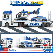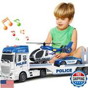 25-Inch Large Police Truck Toy with Racing Car for Toddler Boys