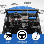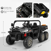 Product Description The 400W 2-Seater 4WD Ride-On Car for Kids with Dump Bed, RC Control, MP3 Player, and LED Lights - 3 Speed Options is the ultimate adventure companion for your little ones. With its robust build and powerful 4-wheel drive system, this ride-on car provides a thrilling and safe riding experience. Whether they're exploring the backyard or cruising around the neighborhood, your kids will have a blast in this rc ride on car. One of the standout features of this ride-on car is the electric dump bed. With a capacity of 0.93 cu.ft, your kids can load up their toys, sand, or other small items and effortlessly unload them with a one-touch electric mechanism. This adds an extra layer of excitement and allows them to engage in imaginative play as they transport their cargo. The 2-seater cabin of this ride-on car is spacious enough for two children to comfortably stretch their feet. They can enjoy the fun together and create lasting memories as they embark on thrilling adventures. The two opened doors make it easy for them to get in and out of the car, enhancing their independence and sense of adventure. Equipped with 6 wear-resistant wheels and spring suspension, this ride-on car can tackle various terrains with ease. The shock-absorbing suspension reduces bumps for a smoother and more enjoyable ride. Your kids can confidently navigate through grass, gravel, or pavement, experiencing the thrill of off-roading in their very own ride-on car. The function control steering wheel makes steering easier and smoother, giving your kids a realistic driving experience. They can feel like they're in control as they navigate through turns and maneuver around obstacles. The durable PP wheels ensure long-lasting performance, so your kids can enjoy countless hours of fun in their ride-on car. With the 400W motor and 24V - 7AH rechargeable battery, this ride-on car offers impressive power and performance. The LED lights, including 2-piece LED searchlights, add a cool and stylish touch to the car, enhancing visibility and making it even more exciting for your kids. Here are the key features and specifications of the 400W 2-Seater 4WD Ride-On Car for Kids with Dump Bed, RC Control, MP3 Player, and LED Lights - 3 Speed Options: Motor: 75W*4 Powerful Motors Battery: 24V - 7AH Rechargeable Battery LED light: 2-Piece LED Searchlight Seat width: 19.68" Loading Capacity: 110 lbs Assembled Product Dimensions (L x W x H): 56.3 x 26.8 x 25.6 Inches Recommended for Kids: 2 kids 1-3 years old, 1 kid 3-8 years old Speed: Three speeds on the remote control for adjustment, low speed of 1.8mph, middle speed of 3.0mph, max speed of 4.9mph Charging time: 8-12 hours Long battery life-up to 90-120 minutes (Based on child weight) With its adventurous design and exciting features, the 400W 2-Seater 4WD Ride-On Car for Kids with Dump Bed, RC Control, MP3 Player, and LED Lights - 3 Speed Options is the perfect choice for your little adventurers. Let their imaginations run wild as they embark on thrilling rides and create unforgettable memories in their very own ride-on car.