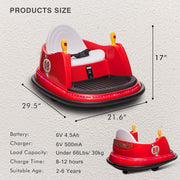 6V Electric Kids Ride-On Bumper Car with 360° Spin and Remote Control - Red Toddler Toy