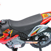 The 6V Electric Ride-On Dirt Bike for Kids - Outdoor Recreation Motorcycle Toy is the perfect choice for little adventurers. This ride-on motorbike combines motocross looks with durable and tough plastic, ensuring years of thrilling fun.With its two side training wheels and a top speed of 1.25mph, this ride-on toy guarantees a safe and exciting experience for young riders. The authentic driving experience is enhanced by the working headlight and sound effects, adding to the thrill of the ride.Operating the bike is easy and intuitive. Simply press the button on the handle to move forward, and release it to stop. The ride-on dirt bike is designed for use on asphalt roads, brick roads, or cement floors, allowing kids to explore various terrains.The 6V Electric Ride-On Dirt Bike is recommended for children aged 60 to 96 months old, weighing up to 55 lbs. It is designed to provide a safe and enjoyable ride for kids within this age range.Key Features:- Authentic driving experience for little kids- Two side training wheels for added stability- Top speed of 1.25mph for a thrilling ride- Working headlight and sound effects for an immersive experience- Easy-to-use button on the handle for forward movement and stopping- Suitable for use on asphalt roads, brick roads, or cement floors- Recommended for children aged 60 to 96 months old, weighing up to 55 lbs- Certifications: ASTM F963 CPSIAProduct Specifications:- Material: PP Iron- Color: Red- Net Weight: 17.6lbs- Max Load: 55lbs- Overall Dimensions: 40.2"L x 20.9"W x 26"H- Two Wheels Dimensions: ?12.2" x 3"W- Two Side Wheel Dimensions: ?3.1" x 0.6"W- Seat Dimensions: 12.6"W x 4.3"D- Top Speed: 2km/h (1.25mph)- Applicable Age Range: 60 to 96 months old- Built-in 6V 4AH Lead-acid Battery- Charging Time: 8-12h (4-6 for the first time)- Continuous Use Time: 45min- Power System: 6V 500MA- Certifications: ASTM F963 CPSIAThe 6V Electric Ride-On Dirt Bike for Kids - Outdoor Recreation Motorcycle Toy is the ultimate toy for young adventurers. With its authentic design, safety features, and durable construction, it offers endless hours of fun and excitement. Get ready to embark on thrilling rides with this ride-on dirt bike.