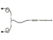 This cat-back exhaust system is constructed of 3 IN - 2-1/2 IN mandrel-bent brushed finished 304 stainless steel tubing for maximum strength and durability. Finishing off this exhaust system are dual 4-1/2 IN diameter black 304 stainless steel clamp-on exhaust tips. The tips feature an aFe POWER logo for a unique style. This system produces a deep sound unleashing all available horsepower and torque. Utilizing a factory style flange and hangers this system is a direct bolt-on system, which requires no cutting or modifications for a hassle-free installation. State-of-the-art computer-aided design technology is utilized for precise vehicle fitment. 100% TIG welded by certified craftsmen for race proven strength and durability. TIG welding provides the strongest welds reducing stress cracks.