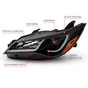 ANZO Projector Headlights With Plank Style Design Black w/Amber 15-16 Toyota Camry (4DR)