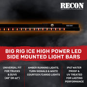 RECON - "Big Rig Ice" Universal Side Mounted LED Light Bar High Power Amber Running Lights, Turn Signals & White Courtesy/Cargo Lights - Multiple Sizes
