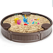 The Brown Corner Seat Sandbox with Convenient Built-in Cover is the perfect outdoor playtime companion for your little ones. Made from weather-resistant and durable HDPE material, this sandbox is built to withstand the elements and provide hours of fun. The rounded edges and smooth surface ensure that children can play safely without any risk of scratching. This sandbox comes with a bottom liner that is perforated for easy drainage and adjustable sand depth. It also includes a foldable cover to protect the sand from leaf litter or debris, keeping it clean and ready for play. The built-in corner seats provide additional space for kids to rest and take a break from their ride-on adventures. Key Features:- Made from weather-resistant and durable HDPE material- Rounded edges and smooth surface for safe play- Bottom liner with perforations for drainage and adjustable sand depth- Foldable cover to protect the sand from debris- Built-in corner seats for resting during playtimeProduct Specifications:- Color: Brown- Material: HDPE- Overall dimension: 47" x 47" x 8" (L x W x H)- Seat size: 8" x 9.5" x 9" (L x W x H)- Net weight: 14 lbs- Seat maximum weight: 110 lbsThis sandbox is lightweight and portable, making it easy to move around for outdoor use. It is the perfect gift for kids to enhance their creativity and enjoy an adventure-filled ride-on experience with friends or parents. The sandbox is certified by CPSIA and ASTM, ensuring its safety and quality.Included in the package:- 1 x Sandbox- 1 x Liner- 1 x Cover- 1 x InstructionEnhance your child's outdoor playtime with the Brown Corner Seat Sandbox with Convenient Built-in Cover. Let their imaginations run wild as they embark on exciting ride-on adventures in this durable and versatile sandbox. Order now and create unforgettable memories of fun and laughter in the sun!