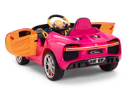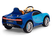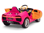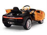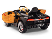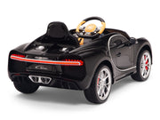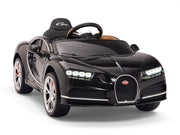 Bugatti ride on cars on sale today. Science says a successful child learns early in life to dream big. What better way to help your child dream big than to put them in the driver’s seat of an Bugatti car with real leather seat! All driving worlds lead to Bugatti. Luscious, beautiful, simply marvelous in black, pink, blue, white, and red. These are just some of the words used to describe the actual Bugatti . Based off the real thing costing more than $1,866,000, Magic Cars* scaled down ride-on version of the Bugatti will provide your child with years of awesome fun! Powered by dual 12 volt motors and a 2-speed switch, playing at being a sports car driver with Magic Cars* Bugatti has never been so exciting!