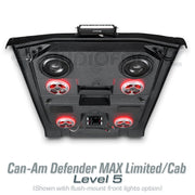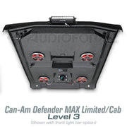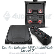Transform your Can-Am Defender Max Limited with the AudioFormz Roof Top Stereo System, the pinnacle of sound and style. Specially designed for the Limited model, this system offers an unmatched combination of versatility, audio performance and aesthetic appeal. Made from hand-laid fiberglass, it's not just lightweight and sturdy but also a bold statement of style and power.