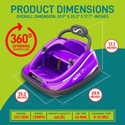 SereneLife SLBUPC96 Children’s Electric Ride-On Bumper Car SereneLife SLBUPC96 Children’s Electric Ride-On Bumper Car (Purple) Imagine your child’s face lighting up as they slip into the driver’s seat of their very own ride-on bumper car. With its dazzling purple finish, glowing LED lights, and effortless 360-degree spin, the SereneLife SLBUPC96 brings fairground fun right to your driveway or backyard. Designed for tots and little adventurers aged 3 and up, this 12-volt, rechargeable bumper car combines safety, style, and excitement into one unforgettable experience. Whether they’re cruising with friends or being guided by you via the included remote, your youngster will delight in every twist, turn, and spin while you relax knowing they’re protected by a sturdy safety belt and durable construction. Why Parents Love This Ride-On Bumper Car You want toys that entertain, inspire, and withstand the test of time—and the SLBUPC96 delivers. No assembly is required, so you can unpack and power up in minutes. A dual-joystick control makes steering intuitive for little hands, while a built-in rechargeable battery gives up to two hours of non-stop thrills. Chunky anti-flat tires and a soft bumper ring ensure a smooth, safe ride over driveways, patios, or playroom floors. Flashing LED lights add an extra wow factor that captivates even the youngest passengers, especially as dusk falls. Immerse Your Child in Unmatched Playtime Adventures From the moment they take their seat and grip the joysticks, kids can spin a full 360 degrees—perfect for pretend bumping sessions or playful pirouettes. The dual driving modes let you choose between gentle, beginner-friendly speeds and a faster pace when they’re ready to level up. Parents can also take control at any time using the 2.4 GHz remote, guiding the bumper car safely away from obstacles and giving the tiniest drivers confidence behind the wheel. Key Features & Benefits 360° Rotation – Two joysticks allow your child to perform complete spins for endless giggles and imaginative “bumper battles.” Dual Driving Modes – Gentle mode for beginners and faster mode for budding racers, ensuring a gradual learning curve and ongoing excitement. Rechargeable 12V Battery – Up to 2+ hours of uninterrupted fun on a single charge; charging time is 8–12 hours (first-time charge 4–6 hours). Parental Remote Control – 2.4 GHz remote lets you guide or override the ride-on car at any moment, combining exploration with peace of mind. Colorful Flashing LED Lights – Built-in head and bumper lights glow and flash for a carnival-style experience that’s especially magical at dusk. Sturdy Safety Belt – An adjustable safety harness keeps your little one secure without sacrificing comfort. Anti-Flat Tires – Durable, maintenance-free wheels provide smooth steering on various surfaces. No Assembly Needed – Out of the box and onto the play area in minutes; simply charge and go. Technical Specifications Motor: 12V / 30W electric motor for steady, reliable power. Top Speed: 1.875 mph – perfect for safe, controlled driving by toddlers. Battery Type: 12V 4.5 Ah lead-acid rechargeable battery. Charger: 12V 500mA included. Weight Capacity: 66 lbs maximum – ideal for children aged 3 and older. Use Time per Charge: Up to 2+ hours of play. First-Time Charge Duration: 4 to 6 hours; subsequent charges 8 to 12 hours. Remote Control Battery: 2 × AA alkaline batteries (not included). Overall Dimensions: 29.9″ (L) × 25.2″ (W) × 17.7″ (H). Dream Big, Spin Wildly, and Explore Safely Picture a sunny afternoon where your kids invite friends over for a derby of laughter and friendly competition. Each child secures their safety belt, grips the joysticks, and off they go—spinning, steering, and bumping into giggles. As the lead rides on in gentle mode, you switch to fast mode, and suddenly they’re mastering new maneuvers and building confidence. Then, as parents, you step in with the remote to show them how teamwork can guide the ride-on bumper car around tight corners or gently steer it out of a sticky spot. Every ride becomes a lesson in coordination, imaginative play, and shared joy. Perfect Gift for Every Occasion Whether it’s a birthday, holiday, or just a spontaneous treat, the SereneLife SLBUPC96 ride-on bumper car is the ultimate present that keeps on giving. It encourages outdoor play, strengthens motor skills, and sparks creativity as kids invent new games and courses. Its eye-catching purple hue stands out in the driveway, drawing envious glances from neighbors and compliments from family and friends. Unwrap a world of fun that lasts season after season—no screens required. What’s Included SereneLife SLBUPC96 Purple Electric Bumper Car 12V/500mA Battery Charger 2.4 GHz Parental Remote Control Instruction Manual Get Ready to Ride! Bring home the SereneLife SLBUPC96 ride-on bumper car today and watch your child’s imagination ignite. It’s more than a toy—it’s a ticket to countless adventures, skill-building races, and cherished family moments. Add that final dash of sparkle to playtime and let the spinning, flashing, and cruising begin!
