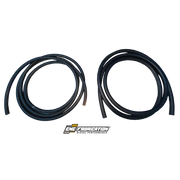 This kit works great from stock 90cc/0 injectors to how ever large you want to run. Pump, regulator, and filters will need to be purchased separately. There are quite a few other shops that build quality fuel pump/filter/regulator kits that will work great with this fuel line kit. All you need is some 1/2" 100psi minimum fuel rated hose/line from the customer supplied pump assembly up to the fuel distribution block, and you're good to go.