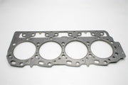 Comprised of multiple embossed layers of stainless steel with the outer layers utilizing a Viton rubber coating. Compressed operating thickness is 0.027". Right Side. Cometic MLS (Multi-Layer Steel) Head Gaskets provide maximum sealing performance for todays high output engines and require no sealants. MLS gaskets are ideal for both aluminum heads to aluminum blocks and aluminum heads to cast iron blocks. They can withstand the shearing force created by the two materials. MLS gaskets have increased strength because they are comprised of multiple layers of stainless steel; which also creates the ability to rebound and resist corrosion. The outer layers are embossed and coated on both sides with Viton (a flour elastomer rubber based material that is heat resistant to 250 C/ 482 F). Viton is designed to meet the demands of a variety of harsh sealing environments, load conditions, and surface finishes. The center or shim layer is uncoated stainless steel, which can be varied to accommodate multiple thickness requirements.