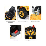 The Costway 12V Battery Powered Kids Excavator Truck with Front Loader for Fun Outdoor Play Introducing our latest fantastic and functional pedal-powered kids ride-on excavator truck with a front loader digger in a vibrant yellow color. This ride-on excavator is designed to provide a realistic experience for your lovely children, allowing them to engage in imaginative play while developing their physical skills and confidence. With its fully-equipped front loader, this excavator truck will move up and down, with the bucket in and out, giving your little builder complete control. Whether they're digging sand, snow, or even toys, this ride-on excavator truck will provide loads of fun and adventure. Key Features: High impact blow molded resin body Non-toxic and easy-to-clean material Pretend play to mimic adult construction Working front loader and tipping digger bucket Scooping, lifting, carrying, and dumping capabilities Pedal-powered with an easy-to-operate handle Convenient for moving and digging Comfortable and spacious seat with safety belt Provides a safe driving environment Good load-bearing capacity of the digger bucket Maximum load capacity of 66 lbs Functions include forward, backward, stop, and high/low speed Suitable for children aged 37 to 96 months Product Specifications: Main Material: Plastic Load Capacity: 66 lbs Ambient Temperature: 0-40 degrees centigrade Speed: 2.5 km/h - 5 km/h Battery: 6V 7AH x 2 Charging Period: 8-12 Hours Each Time Package includes: 1 x Kids ride-on excavator truck 1 x Charger 2 x Rechargeable Battery 2 x Motors 1 x Instruction Get ready for endless hours of outdoor play and adventure with the Costway 12V Battery Powered Kids Excavator Truck with Front Loader. Order yours today and watch your child's imagination soar!