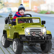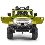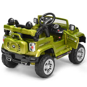 The Costway 12V MP3 Kids Ride On Truck Car with RC Remote and Light in Green is the perfect Christmas gift for your little adventurer. This ride-on truck car is designed to provide endless hours of fun and excitement. With its vibrant green color, it will surely catch the attention of everyone around.Made from high-quality plastic, this remote control ride on truck car is built to withstand the rough and tumble play of young children. Its size measures 43" x 24" x 25" (L x W x H), making it the perfect size for kids to comfortably ride on. With a weight of 34 lbs, it is lightweight enough for easy maneuverability but sturdy enough to support a carrying capacity of up to 66 lbs.Equipped with both a pedal and remote control, this ride-on truck car offers multiple ways to operate. Kids can use the pedal to control the speed and direction of the car, or parents can take control using the included remote control. The car also features an MP3 input, allowing kids to listen to their favorite tunes while cruising around.Safety is a top priority with this ride-on truck car. It comes with a safety belt to keep your child secure during their adventures. The car also has a high/low speed option, allowing you to adjust the speed to match your child's skill level. With a maximum speed of 3 km/h - 5 km/h, your child can enjoy a thrilling ride while staying safe.The Costway 12V MP3 Kids Ride On Truck Car with RC Remote and Light includes everything you need to get started. The package includes 1 X kids ride on car, 1 X remote control, 1 X charger, 2 X rechargeable batteries, and 2 X motors. The car is powered by two 6V 4AH batteries and comes with a charger that has a charging period of 8-12 hours each time.Let your child's imagination run wild with the Costway 12V MP3 Kids Ride On Truck Car with RC Remote and Light. Order now and give them the perfect Christmas gift that will provide endless hours of fun and adventure.