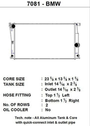 CSF has over 5 decades of experience manufacturing radiators. So when it comes to keeping your engine cool and your F2X/F3X running at its best, a CSF High-Performance All-Aluminum Radiator is the obvious choice. Designed to perform on the street or at the track, a performance radiator is a must-have for both high horsepower builds as well as race vehicles which need added cooling performance in motorsports environments. This radiator features a 2-Row core with CSF's exclusive B-Tube Technology: Unlike a regular oval shape "O" type radiator tube, CSF uses a specially engineered tube in the shape of a "B". These "B-tubes" are carefully formed and then brazed over the seam to seal. CSF is able to use thinner and lighter aluminum material (with better cooling efficiency) because this design is actually stronger than normal "O" shape tubes that are welded. The design (inlet in the middle of the tube that is seam brazed) increases the heat transfer surface area of the tubes by approximately 15% over regular tubes - producing the efficiency of two smaller tubes vs. one large tube within the same space criteria. With "B-tubes" you are able to get "dual liquid laminar flow". CSF also uses ultra efficient multi louvered fins that are carefully and precisely aligned to maximize airflow through each radiator core. Fin specifications are carefully measured and calculated for each application, and tested for maximum heat rejection efficiency in our wind-tunnel lab.