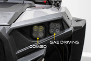 Features Bolt-on fitment compatible with Polaris RZR XP 2014-2023. Replaces factory headlight with four SS3 LED Pods. Backlight feature provides DRL. Plug-and-play fitment. Highly durable powder-coated stainless steel brackets. Engineered and assembled in the USA. Overview Introducing the SS3 LED Headlight Kit compatible with Polaris RZR XP 2014-2023! This Headlight Kit is completely plug-and-play and the CAD-designed brackets allow you to mount four SS3 LED pods directly into the factory headlight openings. The LED pods feature custom-engineered TIR optics combined with high-power LED chips that deliver maximum headlight performance for the RZR XP. Backlight Functionality The SS3 pods in this kit include a distinctive amber backlight feature. The backlight fully illuminates the TIR optics, providing unique accent lighting that you won't find in other Headlight Kit compatible with Polaris RZR XP on the market. The included harness allows you to easily enable the DRL functionality! Sport or Pro. SS3 LED Headlight Kits are available at two different power levels. Both options use high-intensity LED emitters, and TIR optics for unmatched focus and overall output. Proven Durability. This SS3 LED Headlight Kit has been built to withstand getting blasted with rocks and sand. All Stage Series lighting has been extensively tested for long-term operation from -40 to 185 degrees F, along with vibration, moisture intrusion, and corrosion testing. All of these tests are completed to SAE standards, just like factory components.