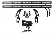 Features Direct fitment on 2018-2025 Jeep Wrangler. CAD-designed for perfect fitment and OEM-like appearance. Highly durable powdercoated steel construction. Utilizes existing mounting points and hardware for a simple installation. Control through factory aux switch bank using the included harness. Overview Perfect Fitment. The Bumper LED Light Bar Kit compatible with Jeep Wrangler 2018-2025 from Diode Dynamics allows you to mount either a single SS30 Stage Series 30" LED Light Bar or dual Stage Series 30" LED Light Bars on the factory front bumper. These application-specific brackets were CAD-designed to install using factory mounting points. No cutting or drilling required! Choose your look. This kit can be mounted in different ways to achieve the look you're after! Mount a single light bar using the base brackets or use the included extension brackets to allow clearance for a winch or mount a second light bar for maximum light output. The brackets without the light bars or harnesses are available separately and are compatible with any generic 30" LED light bar. Control through aux switch bank. Included with the kit is our new OEM Auxiliary Switch Dual-Output Wiring Harness. This harness allows you to control your LED light bars using the factory-installed aux switch bank. For those who don't have the aux switch bank our Heavy Duty Dual/Single-Output Wiring Harness is also included. What's Included Two (2) Application-specific heavy duty steel brackets for installation on 2018-2023 Jeep Wrangler Two (2) Extension brackets One (1) or Two (2) SS30 Stage Series 30" Light Bars One (1) Aux Switch Adapter Wire One (1) Heavy Duty Dual-Output Harness or One (1) Heavy Duty Single-Output Harness All Necessary Hardware Installation Guide