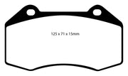 EBC Yellowstuff is an aramid fibre based brake compound with high brake effect form cold and is possibly one of the first ever compounds that can be used for STREET AND TRACK DRIVING. These pads do not require warm up but do get even stronger under the heat of hard driving. These are not a low dust pad and if your desire is for a low dust premium street use pad, you should consider EBC Redstuff.When considering full race use, Yellowstuff has been a strong favourite, having been used for two years in the Swedish Camaro Cup and at numerous other race events where a stock caliper system is fitted.It is also the choice of 90-percent of the Mazda MX5 Miata competitors in the UK race series and has an unblemished record as rotor friendly track pad for vehicles up to 2000 lbs weight or 200 BHP.In the USA the SCCA and NASA drivershave been testing Yellowstuff with feedback and good reports POURING in from a 543 test driver major market proving event with these groups. Read that figure again 543 test drivers.There is no guesswork here.
