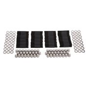 The Edelbrock #8505 bolt kit contain a complete set of the highest quality head bolts and hardened washers available. Cold-formed to ensure molecular integrity and heat treated prior to thread rolling and machining. Reduced diameter bolt heads eliminate the need for valve train removal to facilitate cylinder head re-torqueing. Hardened and parallel-ground washers are included. Rated at 170,000 p.s.i.