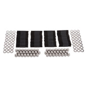 The Edelbrock #8502 bolt kit contain a complete set of the highest quality head bolts and hardened washers available. Cold-formed to ensure molecular integrity and heat treated prior to thread rolling and machining. Reduced diameter bolt heads eliminate the need for valve train removal to facilitate cylinder head re-torqueing. Hardened and parallel-ground washers are included. Rated at 170,000 p.s.i.